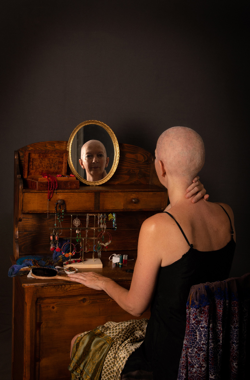 Seize autoportraits nés d’une traversée intime — le cancer, la perte, la résistance, le désir de vie.