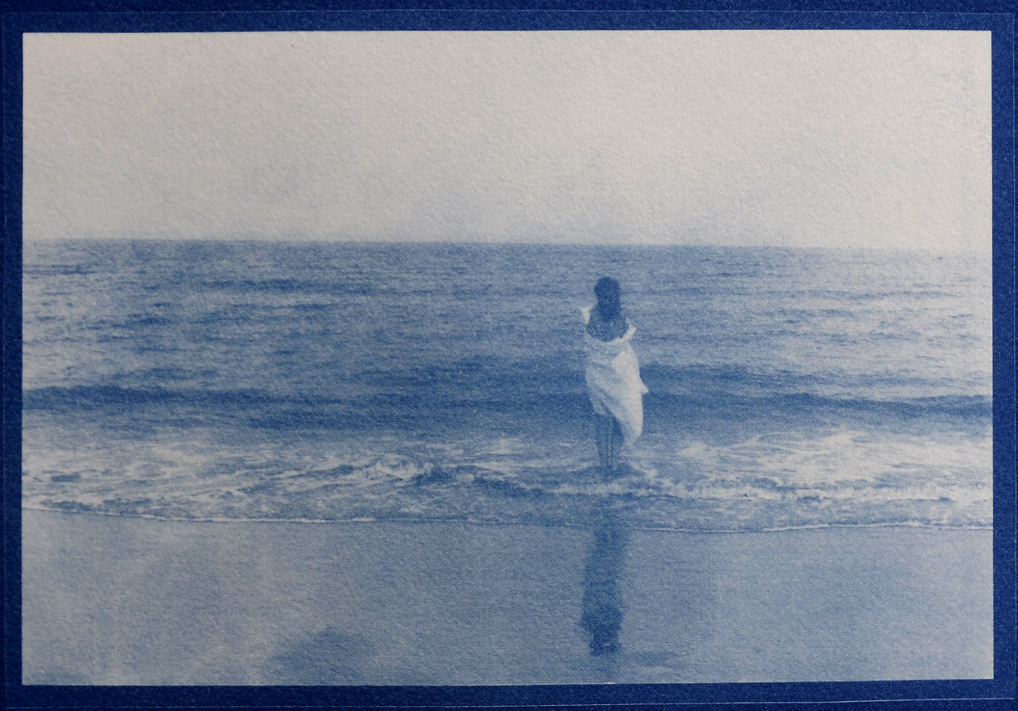 Le cyanotype est une technique ancienne, sensible à la lumière, irréductible à la reproduction. Chaque tirage est unique — deux épreuves d’une même image ne se ressemblent jamais exactement. Ce que vous accueillez est une pièce singulière, que le temps continuera doucement de travailler.